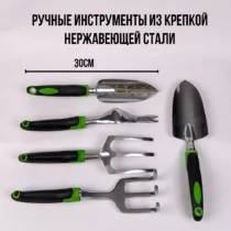 Бұл әмбебап жиынтық өсімдіктерді отырғызу, күтіп-баптау және қырқу үшін қажетті барлық құралдарды қамтиды. Құралдар берік тот баспайтын болаттан жасалған, ал ыңғайлы резеңкеленген тұтқалар жұмыс істеу барысында жайлы ұстауды қамтамасыз етеді.