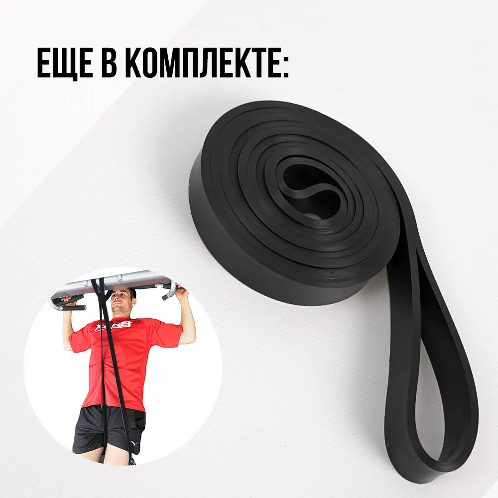 - Турникке тартылуға арналған резинка – жаңадан бастаушыларға алғашқы тартылуларды орындауға көмектеседі және арқа мен қол бұлшықеттерін жаттықтыруға таптырмас көмекші;