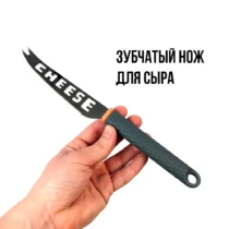 - 🧀 Нож для сыра – с вырезом “CHEESE” на лезвии, облегчает нарезку даже мягких сортов сыра, не прилипая к клинку.