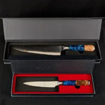 Элегантный и функциональный набор включает 2 ножа — Шеф-нож и малый шеф-нож, выполненные из премиальной дамасской стали в 67 слоев с сердечником из легендарной японской стали VG-10. Эти ножи сочетают безупречное качество, долговечность и эстетичный внешний вид.