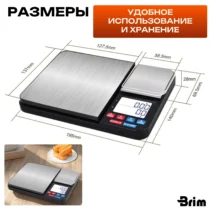 Высокоточные кухонные двойные весы с 0.01гр до 5кг Brim “DuoScale”
